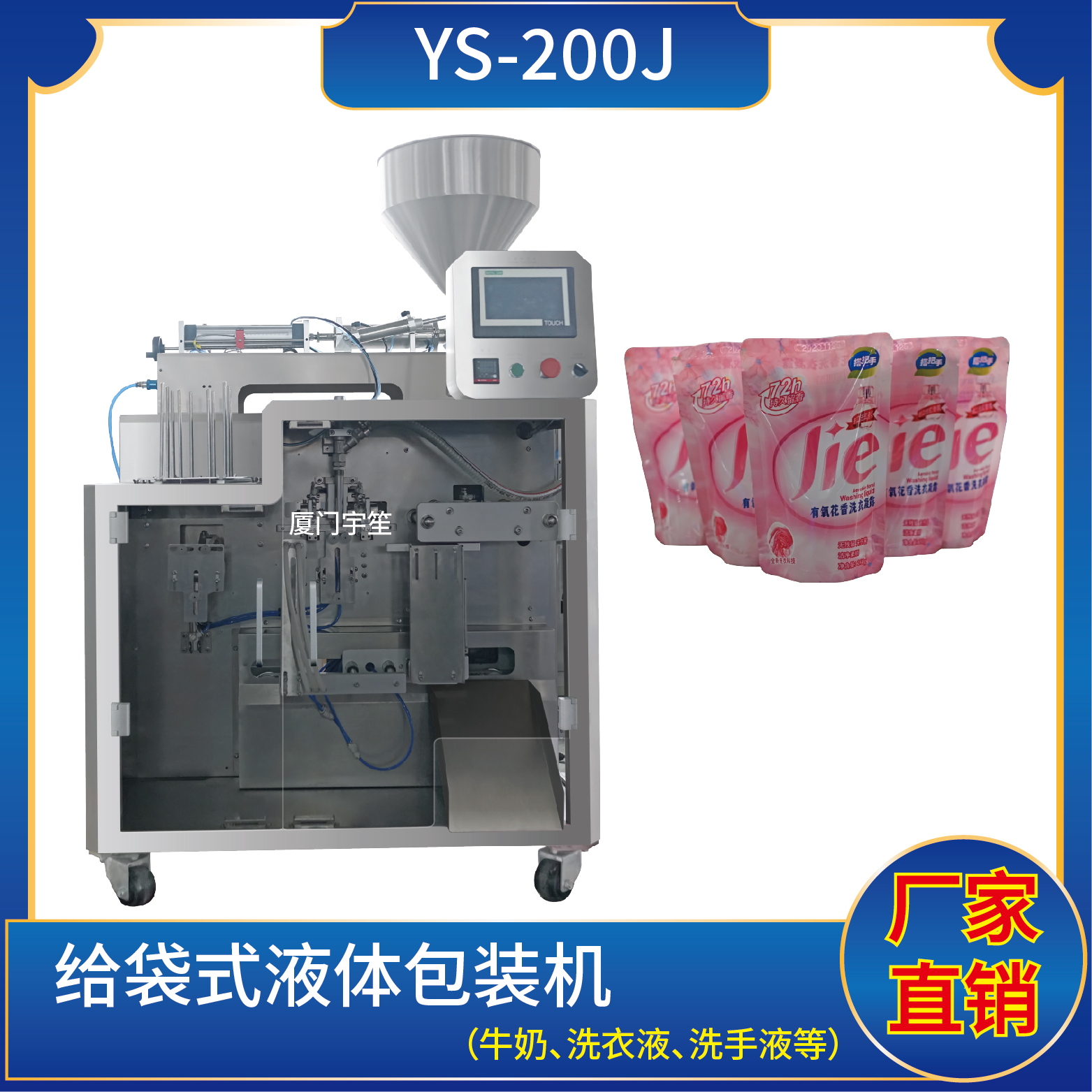 1、適用于食品、醫(yī)藥、化工、化妝品行業(yè)中液體、醬料等物品的計量包裝,如:洗衣液、消毒液、果汁、酸奶等。