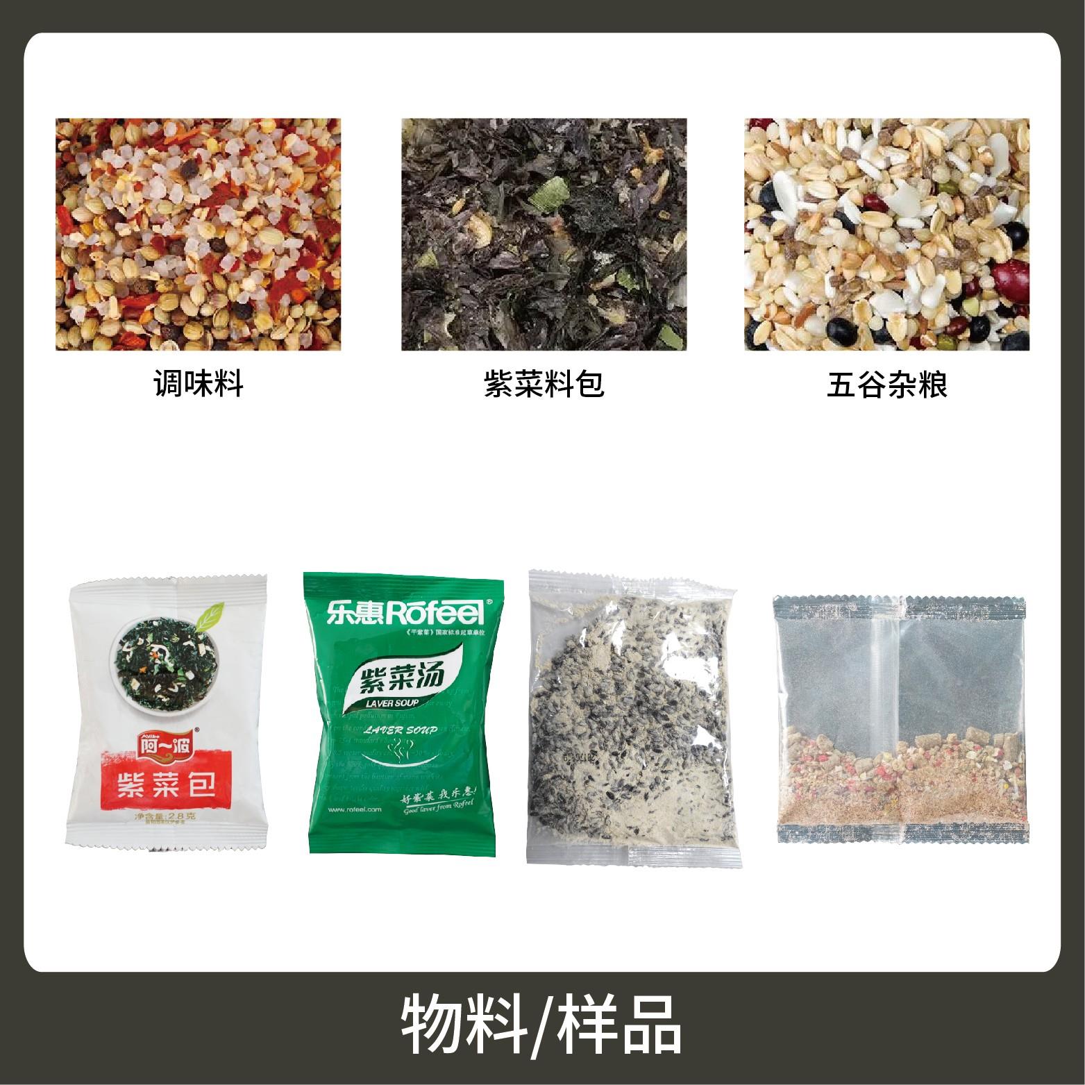 適用于食品、醫(yī)藥、化工、化妝品行業(yè)中顆粒、粉劑、液體、醬料等物品的組合計(jì)量包裝,如裙帶菜、紫菜料包、調(diào)料包。